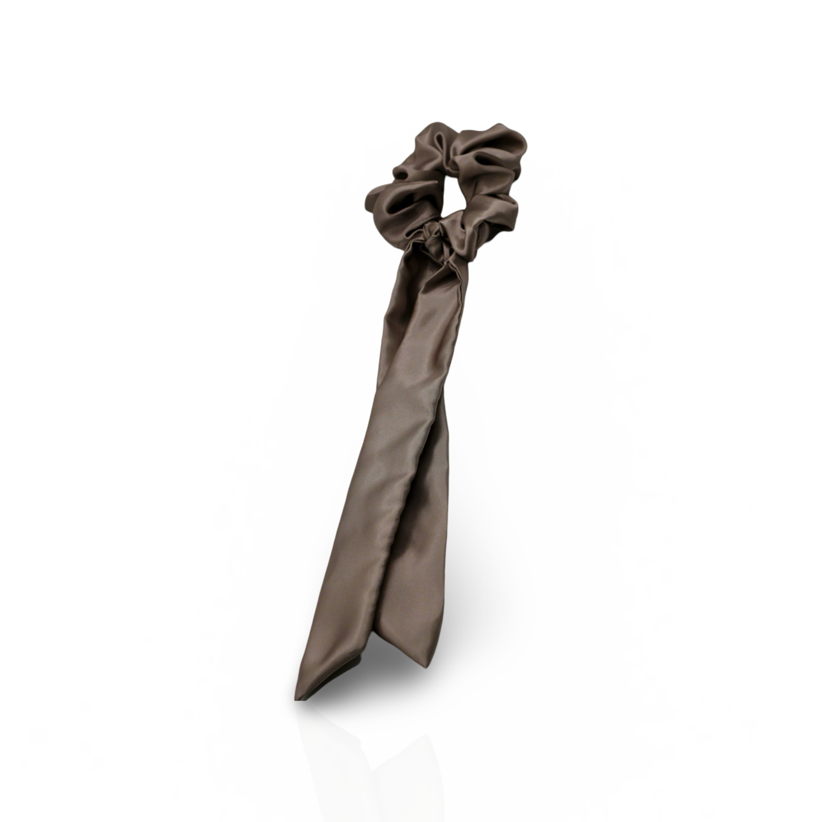 Details: Silky satin material; a 100% woven polyester fabric. Scrunchie measures approximately 6 inches in circumference and each tails is about 12 inches long.